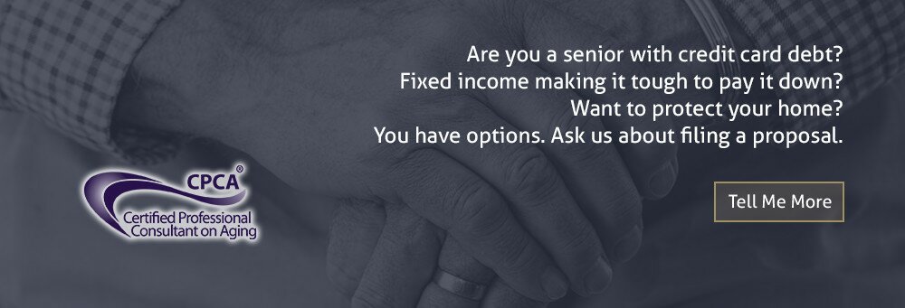 Over 65 and struggling with unexpected retirement debt? We hold a Certified Professional Consultant on Aging (CPCA) designation, and through our membership in groups like CARP & MOSM we’ve helped hundreds of seniors get their financial house in order. Ask us how.